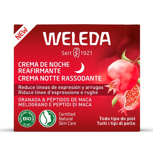 Extender cada noche sobre rostro, cuello y escote después de limpiar la piel y tras la aplicación del Sérum Facial Reafirmante de Granada y Péptidos de Maca.