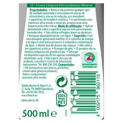 Limpiador Vitrocerámicas Crema Mineral Frosch 500 ML