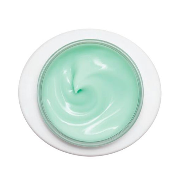 Su textura cremosa, rica y ultrarefrescante, con un tono azul verdoso, se aplica con la ligereza del hielo y genera un efecto criogénico potente e inmediato. Desde la primera aplicación, la eficacia es visible.