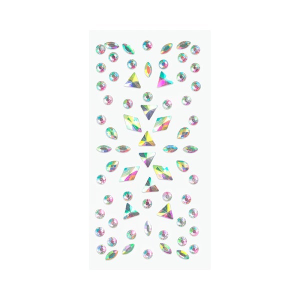 Retira con cuidado las gemas del soporte transparente y colócalas sobre la piel limpia y seca. Presiona ligeramente para asegurar su fijación. Experimenta combinando diferentes formas y tamaños para crear tus propios patrones y estilos.