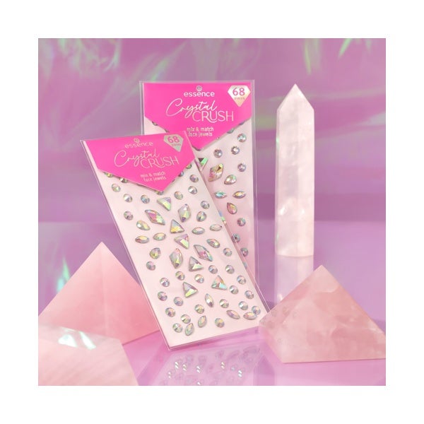 Ilumina tu rostro con las joyas faciales essence CRYSTAL CRUSH 01 Gemstone Glow, un complemento radiante que realza cualquier maquillaje.