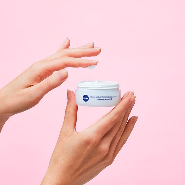 NIVEA Crema de Día Nutritiva FP30 ofrece una hidratación prolongada de hasta 24 horas mientras refuerza la defensa de la piel frente a las agresiones externas.