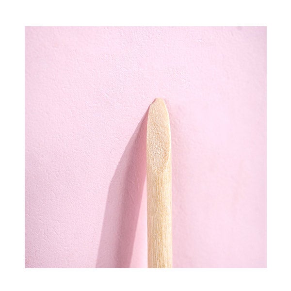 - Sostenga el palito para cutículas en un ángulo cercano a 45 grados y deslice con suavidad la cutícula utilizando la cara plana o rugosa del instrumento.