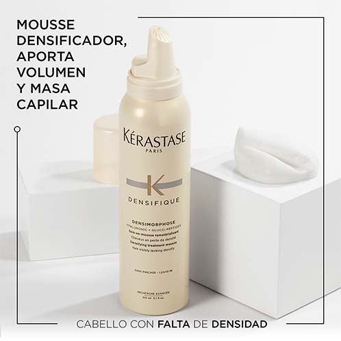 Densimorphose es un sérum en espuma con efecto densificador que proporciona un volumen inmediato al cabello. Perfecto para quienes desean una melena con mayor cuerpo y grosor. El pelo luce con más movimiento y volumen natural.