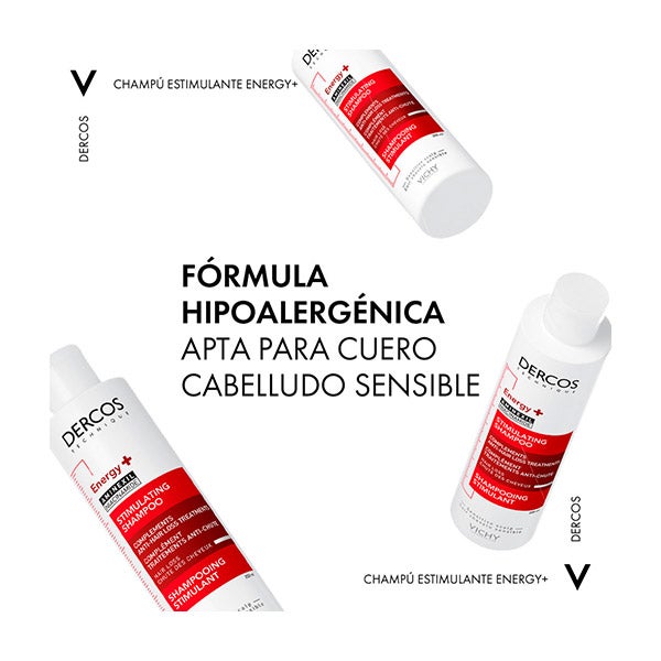 Dercos Technique Champú Estimulante Energy+ Efecto Estimulante 200ml de Vichy. Este champú revitalizante está formulado para todo tipo de cabellos y contiene la reconocida molécula anticaída Aminexil, que contribuye a reducir la caída del cabello.