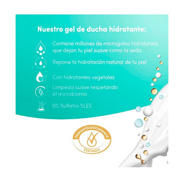A diferencia de los geles de baño habituales, Dove Advanced Care incorpora la exclusiva tecnología de microhidratación patentada, diseñada para mantener la humedad natural de la piel hasta 24 horas. Esta innovación de Dove libera millones de microscópicas gotas hidratantes que, en lugar de eliminarse con el aclarado, se integran profundamente en la piel y colaboran con su proceso natural de regeneración para reforzar la barrera cutánea y conservar la humedad incluso después de ducharte.