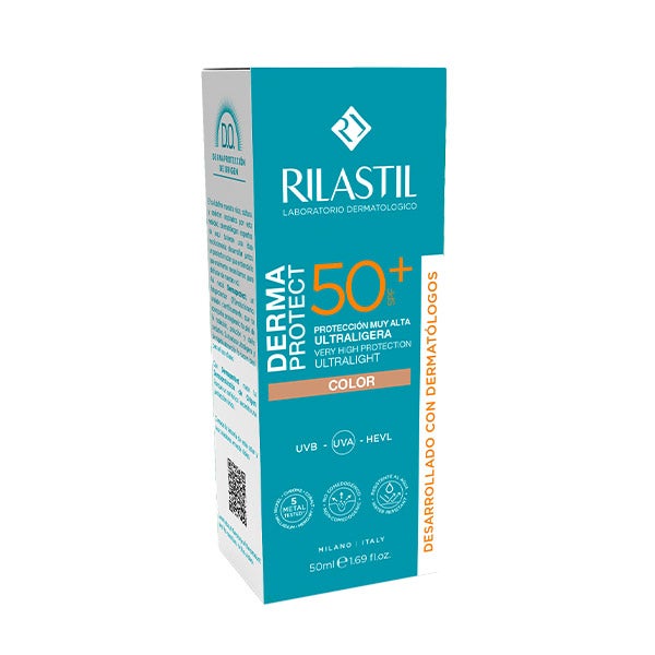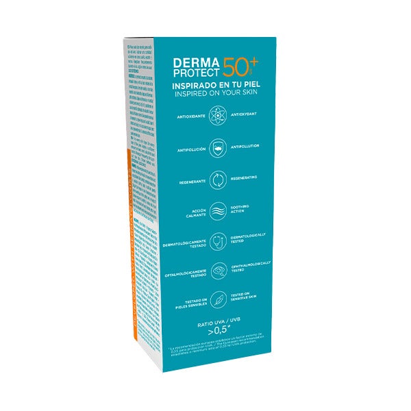 DERMAPROTECT 50+ COLOR es una emulsión ligera con color, diseñada con una combinación de filtros físicos y químicos de gran tolerancia dérmica, que proporciona protección solar UVA/UVB con un ratio UVA >50% UVB.