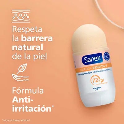 Sanex Dermo Sensitive es un desodorante roll-on antitranspirante, con lactoserum. Minimiza el riesgo de irritaciones y proporciona 24h de protección eficaz. Combate la causa del mal olor y restaura el pH natural de la piel. No contiene etanol - 0% alcohol. Piel sana.
