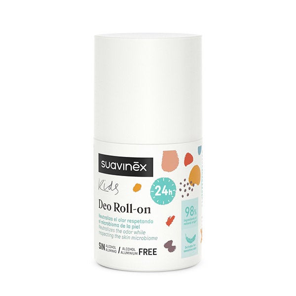 Desodorante infantil Suavinex. Formulado con un 98% de componentes de origen natural. Ayuda a disminuir la acción enzimática de las bacterias responsables del mal olor.