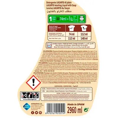 Lagarto Detergente Lavadora Al Jabón 40 Dosis se puede usar directamente en el tambor de la máquina lavarropas, tanto en temperaturas frías, tibias como calientes. Su agradable olor a limpio perfuma toda la ropa, con el auténtico y siempre recordado aroma del jabón de siempre, una auténtica reminiscencia a la infancia de cualquier español.