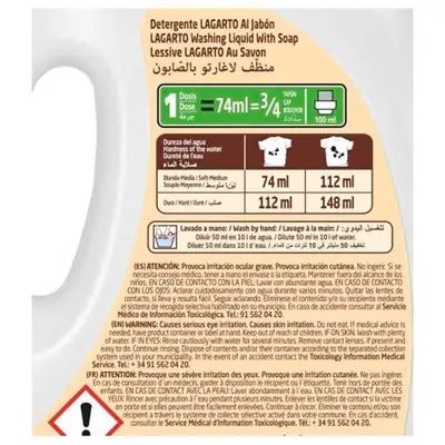 Detergente líquido para el lavado de ropa con autentico Jabón Lagarto. Producto pensado para todo tipo de aguas y temperaturas. Lagarto Detergente Lavadora Al Jabón 40 Lavados es simplemente fantástico, está pensado para el lavado a máquina de cualquier tejido, deja limpia la ropa de toda la familia, con el agradable e inconfundible aroma de la marca.
