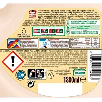 Detergente lavadora líquido Omino Bianco jabón de Marsella 45 lavados