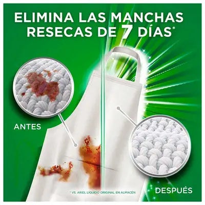 Limpieza Profunda + Eliminación de Manchas Adicional: Gracias a su fórmula de vanguardia, este detergente líquido de Ariel es capaz de eliminar incluso las manchas más difíciles, incluidas las manchas resecas de hasta 7 días.