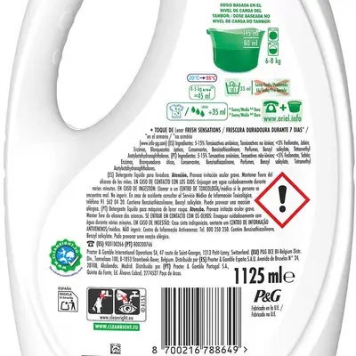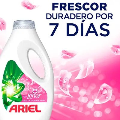 El detergente líquido Ariel Sensaciones elimina las manchas en el primer lavado ofreciendo una limpieza increíble. Ariel es duro con las manchas, pero suave con tu ropa, y su fresca fragancia dura todo el día para que tu ropa parezca como recién sacada de la lavadora. Al contrario que el detergente en polvo, el detergente líquido Ariel actúa justo en el foco del lavado. Elimina las manchas causantes de malos olores, como el sudor y los olores corporales, y deja tu ropa limpia y con un agradable aroma. Para obtener los mejores resultados, introduce la arielita con detergente en el interior de la lavadora. Para un frescor y suavidad adicionales, utilízalo con los suavizantes para ropa Lenor. Ariel Sensaciones también está disponible en detergente en polvo y cápsulas.