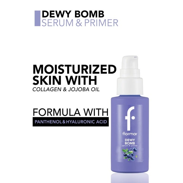 Dewy Bomb Serum Hidratante y Prebase de Maquillaje ayuda a nutrir la piel mientras prolonga la duración del maquillaje.