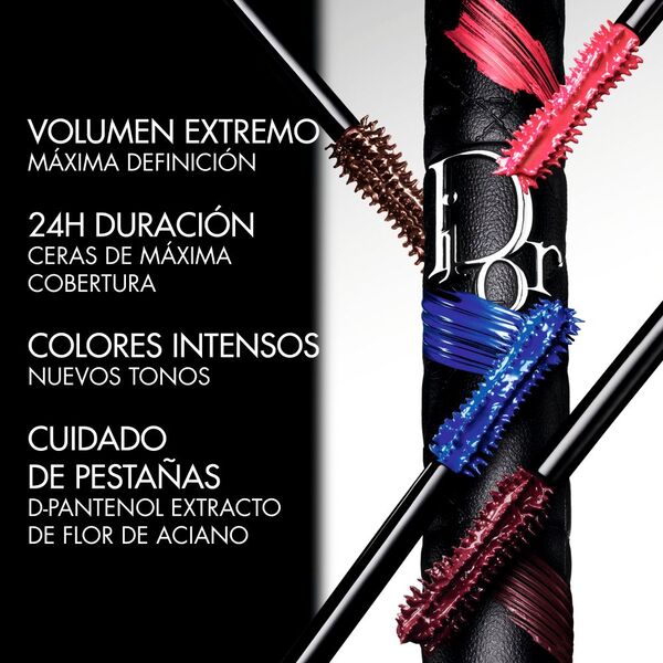 Esta máscara Dior proporciona hasta un +440 %* de volumen inmediato, realzando cada pestaña de forma individual para lograr un efecto desplegado. Su fórmula intensamente pigmentada cubre las pestañas con un tono profundo, resistente a la transferencia y con una duración de hasta 24 horas*.