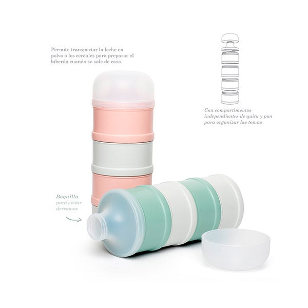 Dosificador de leche en polvo y cereales Suavinex. Ideal para transportar la leche en polvo o los cereales del bebé fuera de casa, garantizando una preparación cómoda y completamente higiénica en cualquier momento.