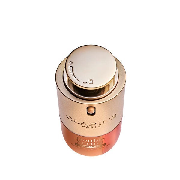 Inspirada en la reconocida tecnología de Double Serum, su sistema [COLOR + HÍDRICO] proporciona un resplandor doble, inmediato y prolongado. La fase [COLOR], impulsada por la tecnología A.U.R.A. (Advanced Ultra Radiance Amplifier), integra microcristales reflectores y activos iluminadores para un resultado satinado, luminoso y sin efecto graso, mientras que la fase [HÍDRICA], enriquecida con papaína estabilizada, contribuye a mejorar la textura de la piel, revelando una luz homogénea y fresca.