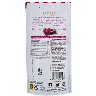 Un fruto rojo muy de moda por sus numerosas propiedades saludables, bañado en chocolate negro Lacasa.