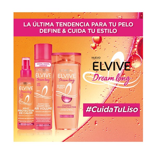 Experimenta el poder del Spray Protector de Calor de Elvive Dream Long: ayuda a resguardar tu cabello del calor de hasta 230ºC* y lo mantiene suave y liso desde la mañana hasta la noche, aportando un acabado impecable.