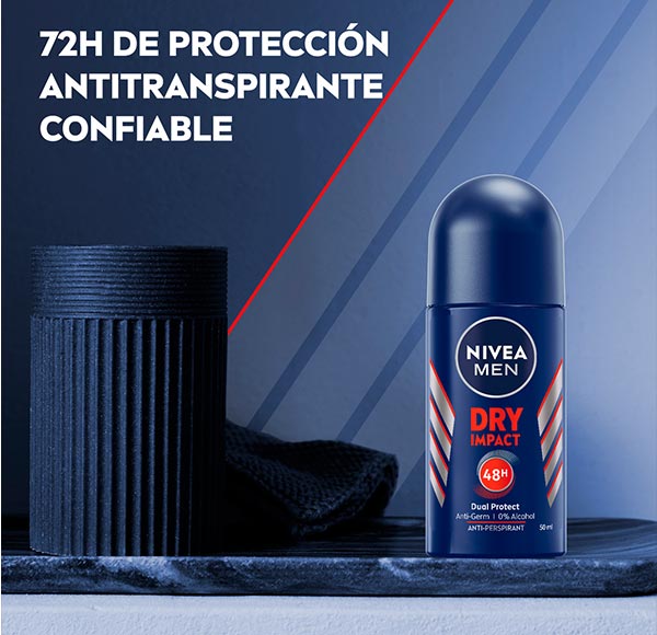 Seco y fresco todo el día: Nivea Men Dry Impact 50 ml Roll-On El Nivea Men Dry Impact 50 ml Roll-On es un desodorante especialmente formulado para hombres que buscan una protección eficaz y duradera contra la transpiración y el mal olor. Este producto combina una avanzada tecnología de regulación de la transpiración con la frescura que caracteriza a la línea Nivea, garantizando comodidad y confianza en cualquier situación. Regulación de la Transpiración Una de las características más destacadas del Nivea Men Dry Impact es su capacidad para regular la transpiración. Su fórmula actúa eficazmente para reducir la producción de sudor, proporcionando una sensación de sequedad y frescura a lo largo del día . Esto es fundamental para quienes llevan un estilo de vida activo y necesitan un desodorante que soporte su ritmo diario sin comprometer su bienestar. 48 Horas de Protección Este roll-on ofrece hasta 48 horas de protección contra el sudor y el mal olor. Su tecnología de larga duración asegura que permanezcas fresco y seco, incluso en condiciones exigentes. Ya sea en el trabajo, durante el ejercicio o en un día ajetreado, puedes confiar en que el Nivea Men Dry Impact roll-on mantendrá su eficacia, permitiéndote disfrutar de cada momento sin preocupaciones. Formato Roll-On 50 ml El formato roll-on de 50 ml es ideal para aquellos que buscan comodidad y facilidad de uso. Su diseño ergonómico permite una aplicación precisa y controlada, asegurando que la cantidad correcta de producto se aplique en cada uso. Además, su tamaño compacto lo hace perfecto para llevar en el bolso o la mochila. Nivea Men Dry Impact 50 ml Roll-On es la opción perfecta para hombres que desean una solución de desodorante que combine eficacia, comodidad y un aroma fresco, manteniéndolos seguros y protegidos todo el día.