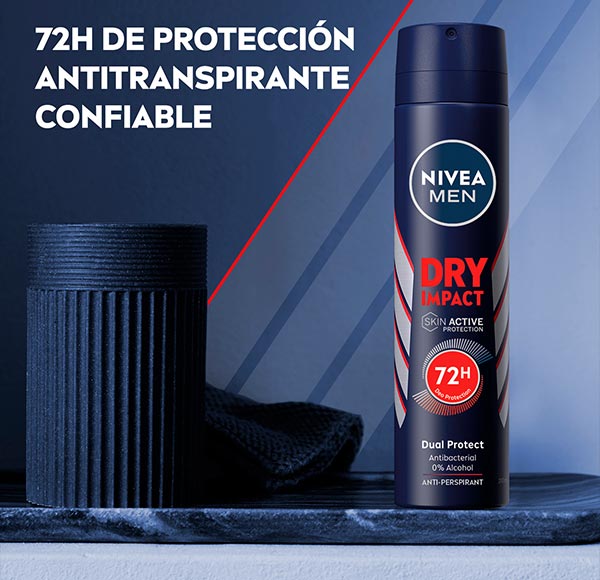 Porque la vida sucede fuera del laboratorio, el NIVEA MEN Dry Impact Spray Desodorante Antitranspirante ha sido puesto a prueba con un innovador test tecnológico que desafía nuestro producto en el entorno más exigente: la vida cotidiana, llena de imprevistos, movimiento y emoción.