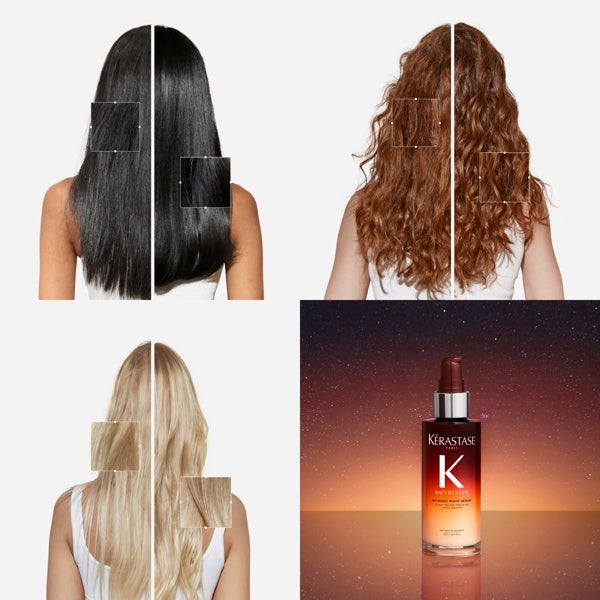 Sérum intensivo de nutrición para cabellos secos, edición limitada, diseñado para aplicar durante la noche.