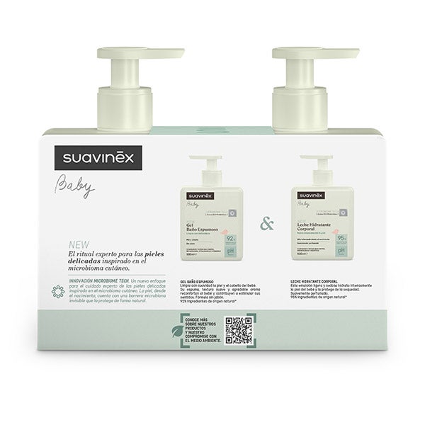 Incluye una leche corporal hidratante, que proporciona una nutrición profunda manteniendo la piel tersa y protegida, junto con un gel de baño espumoso que limpia con suavidad sin causar molestias. En conjunto, ambos productos ayudan a conservar el equilibrio natural del microbioma cutáneo infantil.