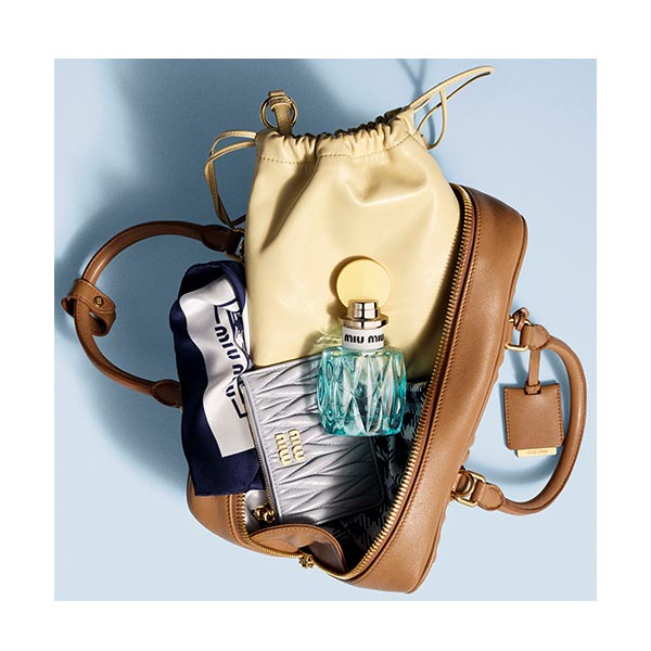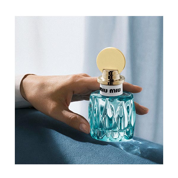 Para disfrutar plenamente de su esencia, aplique Miu Miu L’Eau Bleue en los puntos de pulso: cuello, clavículas y muñecas. Para reforzar la persistencia del perfume, rocíe también en los pliegues internos de los codos y detrás de las rodillas, donde el calor natural del cuerpo intensifica la fragancia durante todo el día.