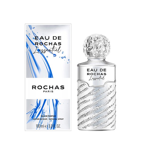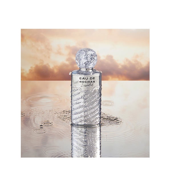 Evocando una noche mediterránea, cuando el mar brilla con reflejos plateados bajo la brisa fresca, Eau de Rochas L'essentiel despliega una estela mineral, floral y cítrica.