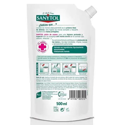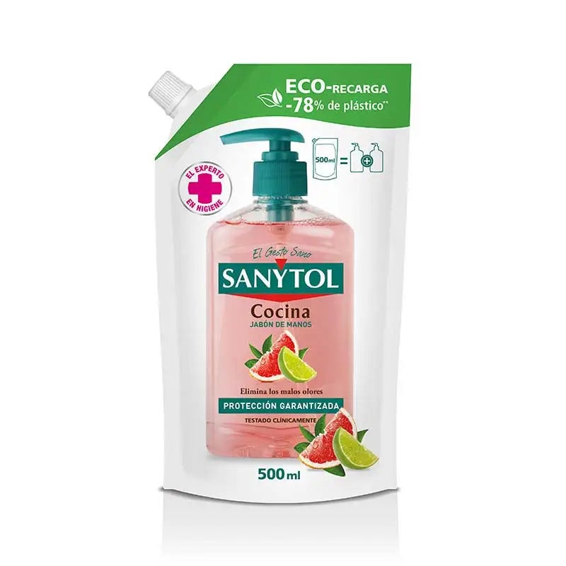 Sanytol Jabón de manos Eco-pack con proteccion total contra agentes externos Cocina 500ml