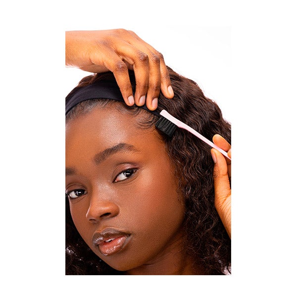 Empieza aplicando tu producto de peinado favorito y comienza a alisar los mechones sueltos o baby hairs. Utiliza las cerdas del cepillo para extender el producto de manera uniforme y asegurar un resultado liso y duradero.