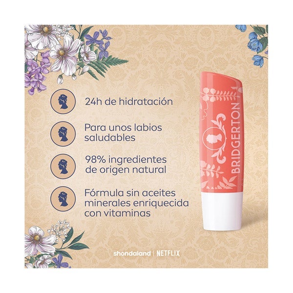 El Bálsamo Labial 24h Hidratación Liposan Bridgerton se presenta en una edición limitada inspirada en el sofisticado y romántico mundo de la serie. Su composición garantiza una hidratación prolongada durante 24 horas, manteniendo los labios suaves, nutridos y con un aspecto sano a lo largo del día.