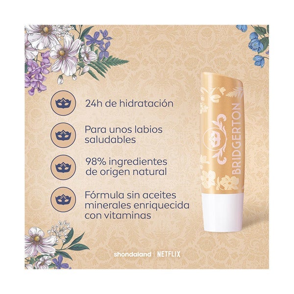 El Bálsamo Labial 24h Hidratación Liposan Bridgerton se presenta en una edición exclusiva que captura la esencia sofisticada y romántica de la reconocida serie. Su composición ofrece hidratación prolongada durante 24 horas, ayudando a mantener los labios protegidos, flexibles y con un aspecto saludable a lo largo del día.