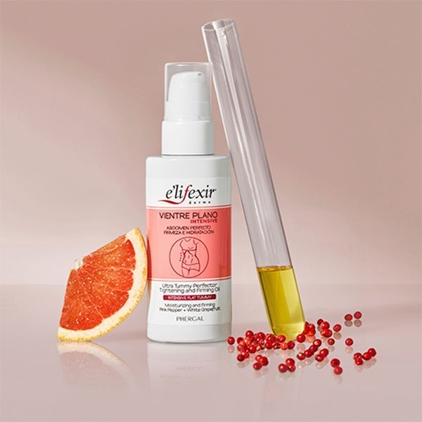 Elifexir Vientre Plano Intensive Aceite favorece la microcirculación, contribuyendo a eliminar la grasa localizada y a prevenir su acumulación.