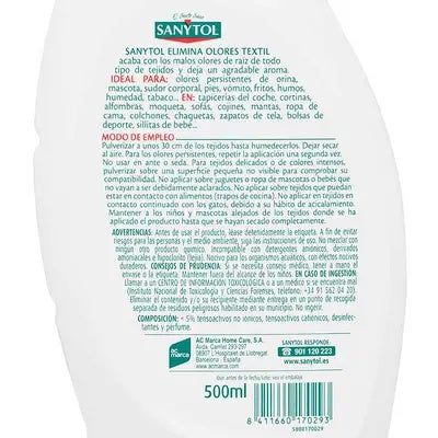 Compra Sanytol elimina olores textil online en Arenal. Como ya sabes, muchos de los malos olores que se encuentran en nuestros hogares se deben a la presencia de microorganismos, como gérmenes y bacterias. Su existencia se manifiesta con ese olor desagradable y la manera de acabar con él es una limpieza y desinfección a fondo. Utilizando Sanytol eliminar olores textil desinfectante, conseguirás eliminarlos y además aportarás una perfecta desinfección. Acércate por nuestras tiendas Arenal y te informaremos sobre todos los productos Sanytol.