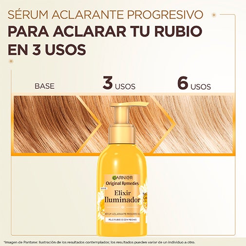 Su textura ligera y sin enjuague permite aplicarlo fácilmente sobre el cabello húmedo o seco. ¿Deseas un aclarado más visible? Potencia su acción activando la fórmula con calor o aprovechando la luz solar.