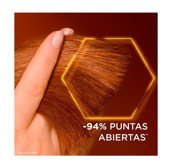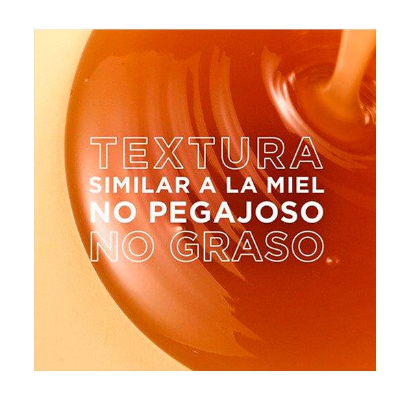 Gracias a su tecnología de súper sérum, este tratamiento capilar no deja residuos ni sensación grasa o pegajosa, manteniendo el cabello ligero y suave. Su aroma combina toques afrutados y frescos de ámbar con un delicado fondo de miel cremosa.