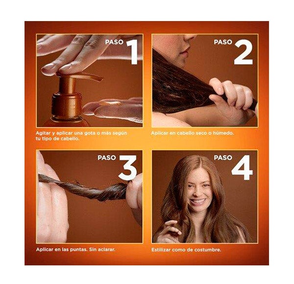 Extiende sobre los largos y las puntas del cabello, ya sea húmedo o seco.