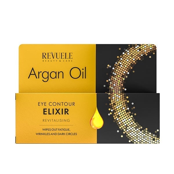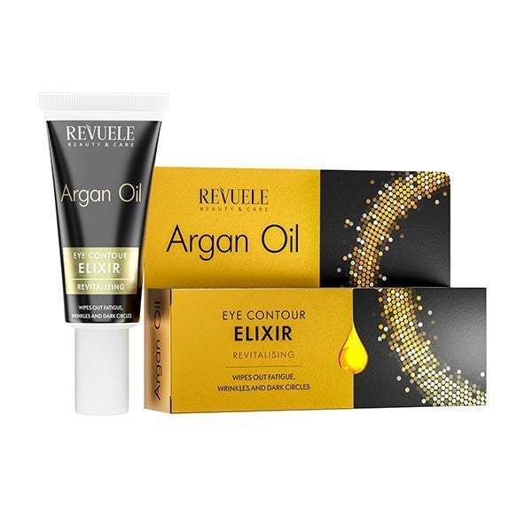 REVUELE ARGAN OIL EYE CONTOUR ELIXIR REVITALIZING DISIPA LOS SIGNOS DE CANSANCIO, ARRUGAS Y OJERAS.