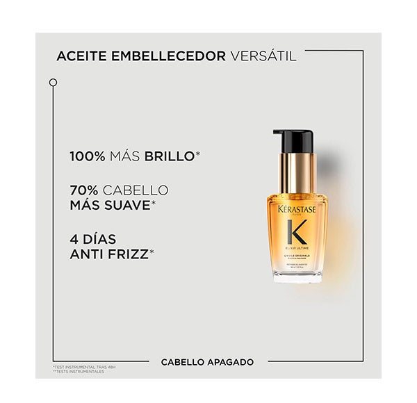 Este preciado elixir embellece, nutre y protege tu cabello en profundidad, aportándole luminosidad visible. Además, su fórmula controla el encrespamiento hasta por 96 horas**, manteniendo una suavidad y un alisado impecable.