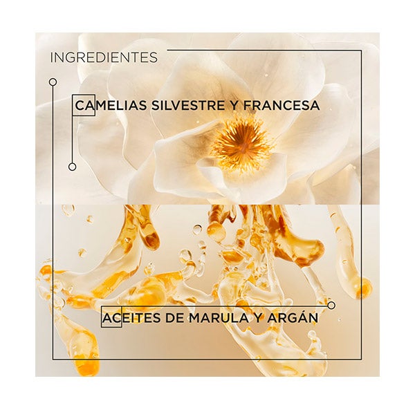 Enriquecido con extracto de Camelia francesa, su fórmula exclusiva convierte a este aceite emblemático en el aliado ideal para cualquier tipo de cabello. Disfruta de un brillo intensificado en un 100%* y de una suavidad instantánea del 70%**.