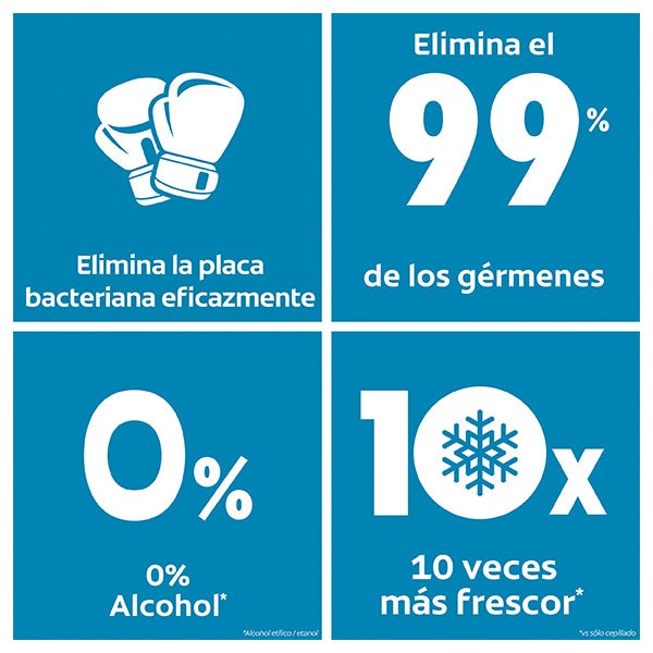 Enjuague bucal que combate la placa bacteriana de manera efectiva, refuerza las encías hasta en un 67% y ofrece un aliento fresco y prolongado.
