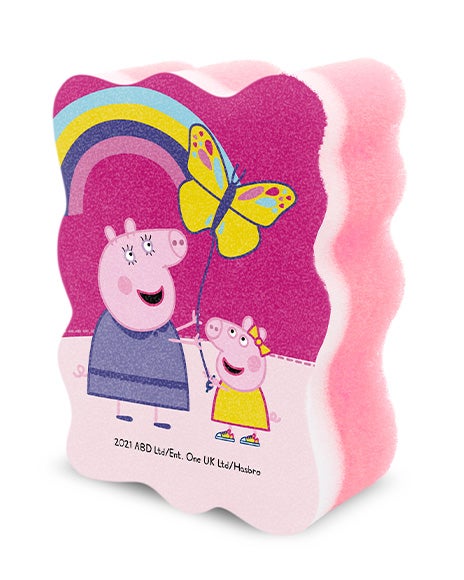 La esponja Peppa Pig ha sido creada para aportar una sensación de extrema suavidad, protegiendo con cuidado la piel sensible de los más pequeños y ofreciendo seguridad en cada uso.