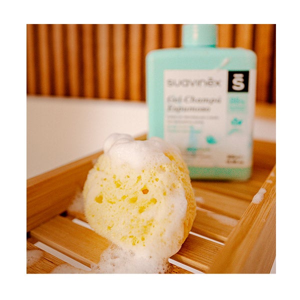 Viene acompañada de una práctica cajita que permite guardarla o llevarla fácilmente. Elaborada con una esponja para bebés 100% natural.
