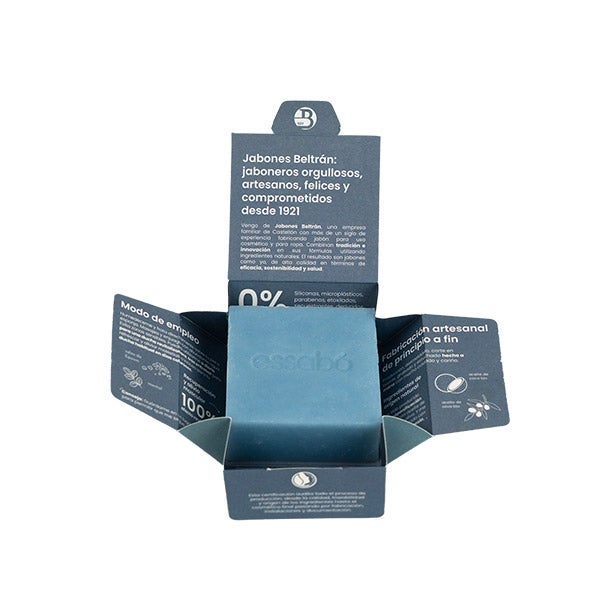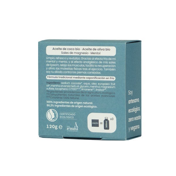 Essabó Deportivo es un jabón de baño cosmético que limpia la piel, proporciona frescor y contribuye a la relajación muscular después de la actividad física. Su sensación fría, originada por el mentol, junto con la acción calmante de las sales de magnesio, ayuda a aliviar la tensión y las molestias corporales tras el ejercicio. Su fórmula se basa en aceite de coco de cultivo sostenible y aceite de oliva de producción biológica española. Fabricado artesanalmente mediante el proceso tradicional de saponificación en frío, es perfecto para usar después del entrenamiento.