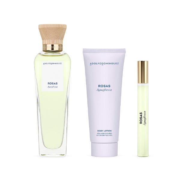 Cofre de regalo Eau de Toilette Agua Fresca de Rosas de Adolfo Domínguez. Contenido del estuche: