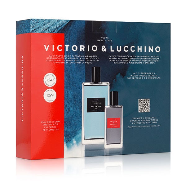 El estuche de Victorio & Lucchino reúne la combinación perfecta de sus Aguas Masculinas. Incluye el Agua Nº2 Frescor Extremo, lleno de energía y tonos marinos, junto a la intensa fragancia Nº8 Atardecer Magnético. Un conjunto que evoca naturaleza y dinamismo.