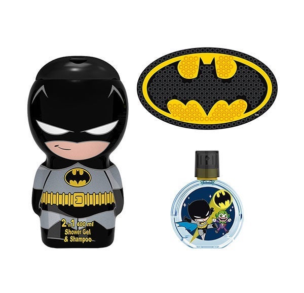 El estuche de Batman y Joker incluye una fragancia de notas frutales y florales en presentación de 50 ml, acompañada por un gel de ducha y champú 2 en 1 de 400 ml, además de un fidget toy para disfrutar y divertirse en cualquier lugar.