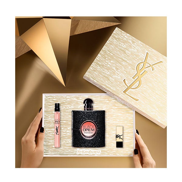Black Opium inaugura la categoría del primer café floral del mercado, concebido para noches vibrantes que se transforman en recuerdos inolvidables. Seguro te vino a la mente alguno de esos momentos únicos. Es el aroma de las mujeres libres, impulsivas y sin límites. El cofre de regalo incluye el eau de parfum Black Opium 90ml, un mini Rouge Pur Couture n°1, una mini Mascara Volume Effet Faux Cils y una elegante bolsa negra.